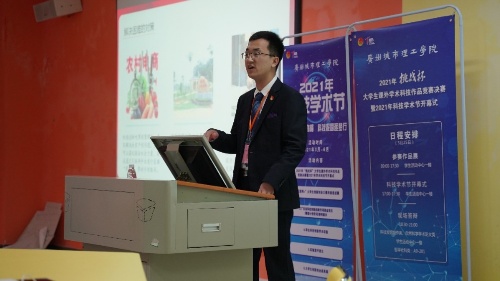 开幕式上,副校长刘洊波在讲话中回顾了近五年我校学生在各类竞赛中获得的奖项,对过去我校学生取得的成绩给予充分的肯定,并对同学们在未来在科技创新方面的发展寄予厚望。他对学生们提出三点希望,一是热爱祖国,勇于创新。作为青年学生,应当严谨求实、潜心钻研、热爱祖国、无私奉献。二是以平台促交融,在参与中学习。积极参与各类科技学术竞赛,提升自我创新能力,努力成为新时代的创新生力军。三是助国家发展,解民生所需。从我国经济社会发展、民生改善与国防建设等急需解决的问题入手,寻找科研选题的突破口,为新时代社会发展和国家的建设做出更大的贡献。