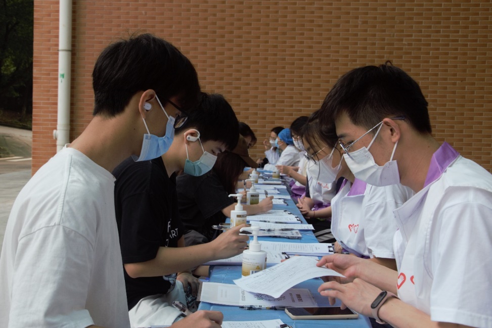 本网讯(记者 龙嘉琰 徐畅 谢佳芸)按照《广东省卫生健康委 广东省教育厅关于进一步加强疫情防控期间高校无偿献血工作的通知》要求,校团委学生志愿者服务中心携手花都区血站于5月21日在学生活动中心开展无偿献血活动。本次献血活动采血人数为839人,采血量225906毫升,再次打破由我校创造的花都区血站成立以来团体单日采血最高记录。
