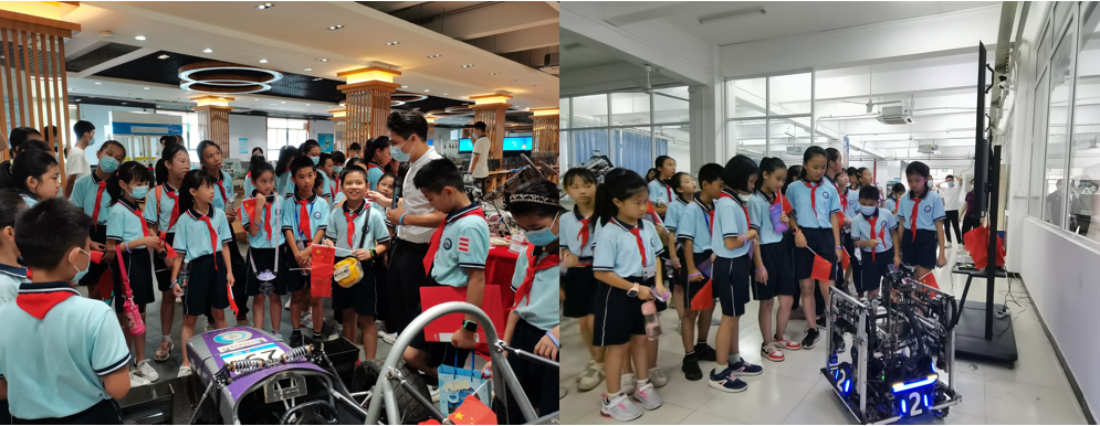 学府路小学的少先队员受邀到我校汽车与交通工程学院及机械工程学院/机器人工程学院的科普基地参观。近距离接触方程式赛车、在老师的指导下模拟调度城市轨道交通、体验操作机器人……可爱的少先队员们对所有的科技发明作品充满着好奇。在参观中,在体验中,在操作中,科创报国的种子在他们心中生根发芽。