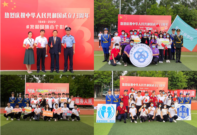 本网讯(记者 梁冰)10月1日上午,我校在足球场举行庆祝中华人民共和国成立73周年升旗仪式暨“喜迎二十大 永远跟党走 奋进新征程”主题团日活动。学校党委书记杜小明、副校长刘洊波,学府路小学校长钟丽华,秀全派出所副所长刘国旗,我校机关部处负责人,各学院院长、书记,学校党员、团员代表,学府路小学少先队员代表等1500余人参加本次活动。