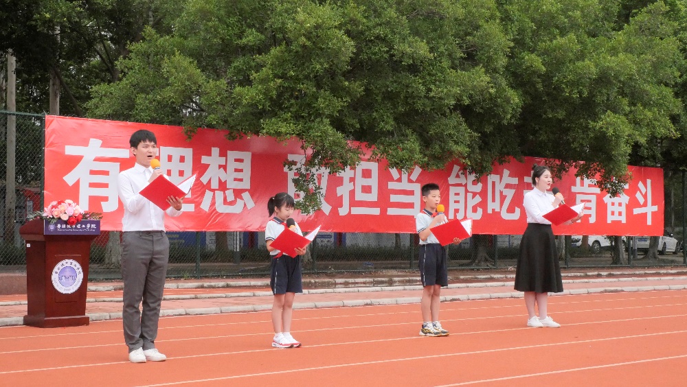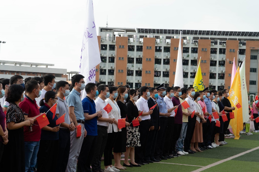 国旗下,刘洊波为伟大的祖国送上衷心的祝福,并鼓励老师们争做有理想信念、有道德情操、有扎实学识、有仁爱之心的新时代“四有”好老师,珍惜人民教师的荣光,热爱教育事业,执着于教书育人,立志于培养学生成长成才;鼓励同学们树立远大理想,厚植爱党爱国爱民之情,学习先锋、争做先锋,努力学习,强健体魄、勤奋劳动,以社会主义建设者和接班人的使命担当,立志为国家发展砥砺奋斗、勇毅前行,争做堪当民族复兴重任的时代新人!