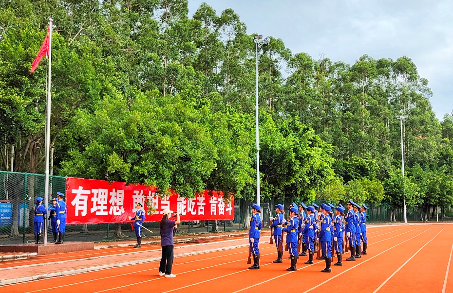 习习微风,晨光缕缕,伴随着《星辰大海》《少年》的歌声,师生齐聚在绿茵场上。上午8点整,升旗仪式正式开始。“齐步走!”国旗护卫队迈着整齐有力的步伐进场。伴随着国歌,五星红旗徐徐升至旗杆顶端,飘扬在广州城理的上空。师生们目光坚定、向国旗行注目礼,少先队员行少先队礼。