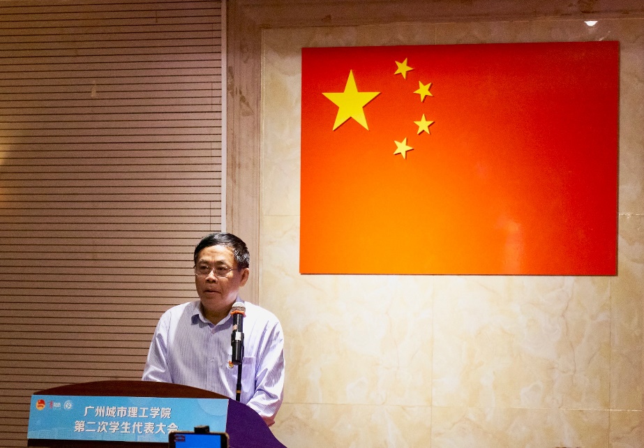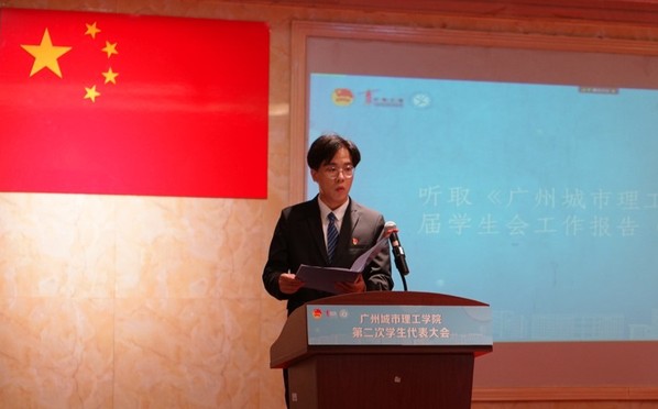广州城市理工学院第一届学生会主席团成员黄泓道同学代表校学生会作题为《青春逢盛世 奋斗正当时 为加快建设省内一流、国内知名的应用型大学贡献青春力量》的工作报告。通过“履行服务宗旨,城理学生会在路上”与“引领风气之先,城理学生会再出发”两部分内容,总结汇报了过去一年学生会的工作和取得的成绩,以及对今后学生会深化改革的要求和期望。