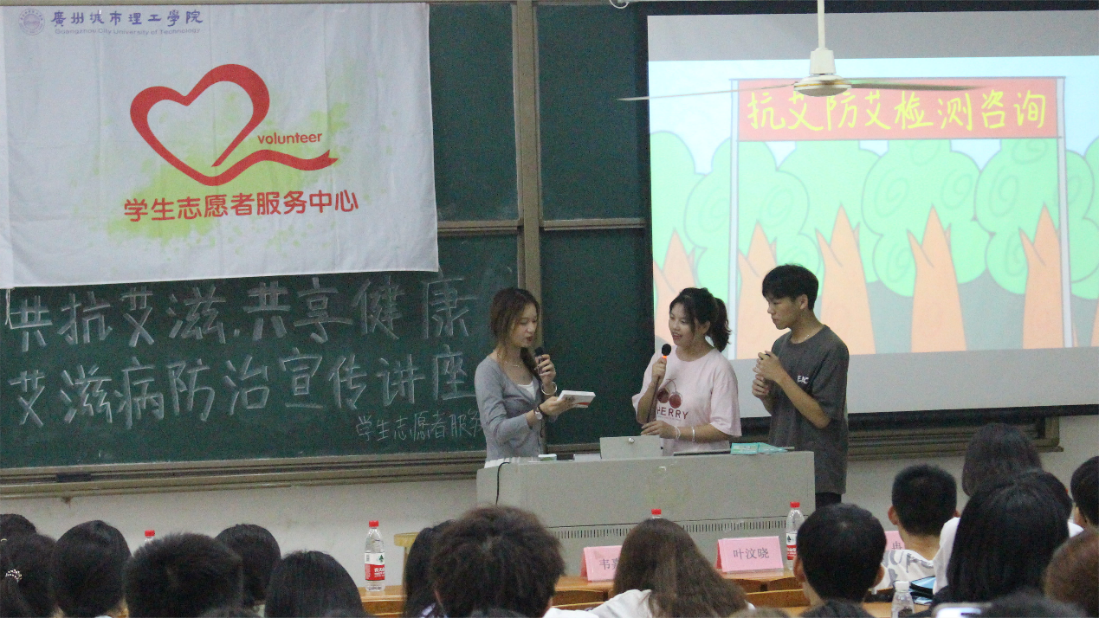 本网讯(记者 谭嘉鴳 袁晨 刘时创)10月19日,校团委学生志愿者服务中心联合广东省性病艾滋病防治协会、花都区疾病预防控制中心在我校A5-101举办以“共抗艾滋,共享健康”为主题的艾滋病防治宣传讲座。此次活动由广东省性病艾滋病防治协会王雅涛主持,500余名学生参加。