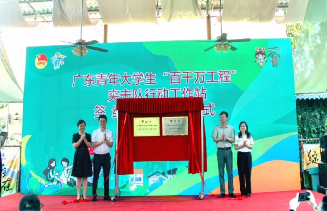 活动中,三方代表共同为工作站揭牌,标志着“百千万工程”花都工作站正式建立,工作站是突击队工作和服务阵地,主要用于联络、支持和保障突击队团队更好地开展“百千万工程”实践服务活动。建筑学院组建青年大学生“百千万工程”突击队与国泰村进行结对,并与国泰村签署“农房风貌美化提升”共建项目书,助力赤坭镇“百千万工程”建设加力提速。