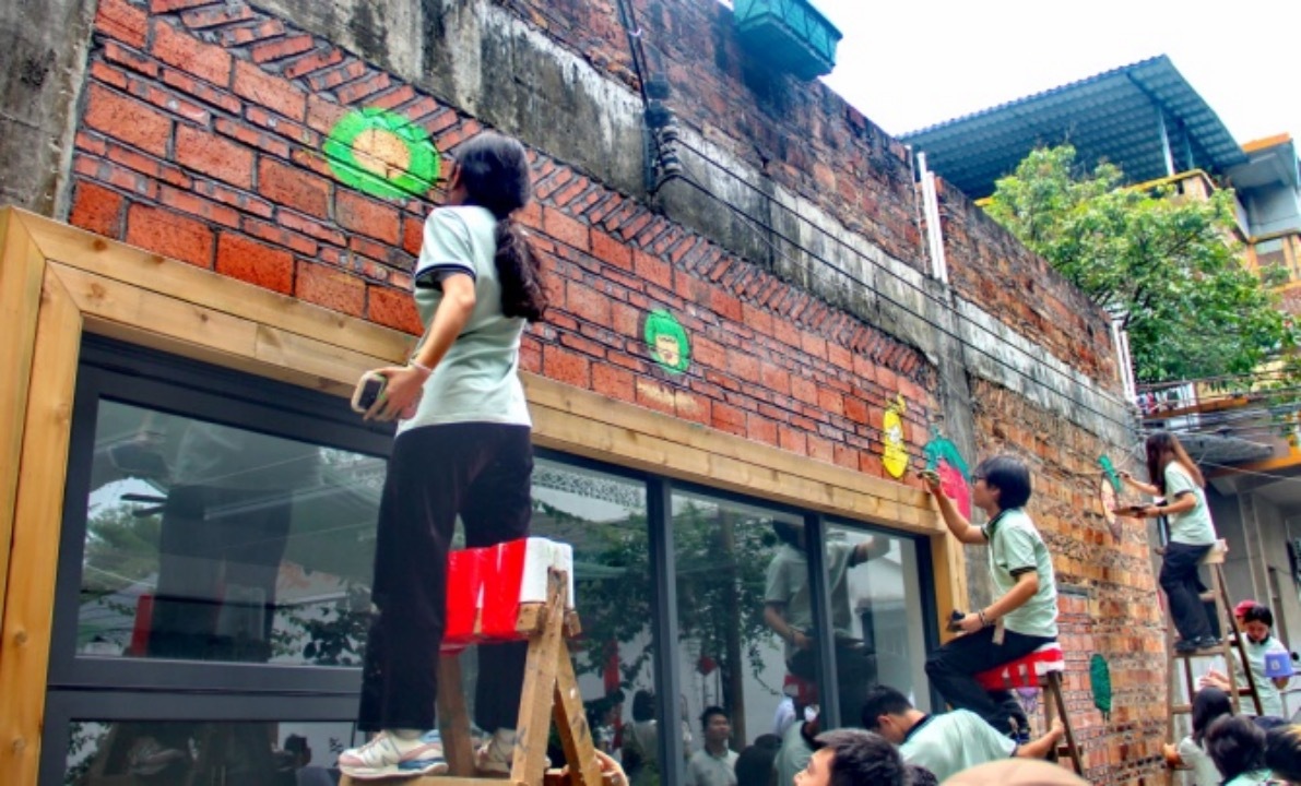 同学们手持画笔,全神贯注地给墙面打底、涂色,一道道程序井然有序进行着。结合热科驿站的特点,他们在墙面上以热带植物为主题制作特色墙绘,在他们的巧手下,多姿多彩的墙绘让原本单调的墙壁变得生动有趣,充满艺术气息,成为一道亮丽的风景。