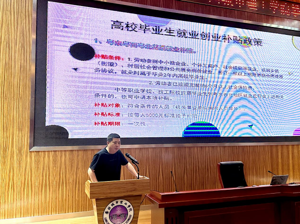 最后由房建辉宣讲及解读连南就业创业相关政策,为学生解答就业创业补贴政策、“三支一扶”、公务员考试、事业编考试等相关疑问。