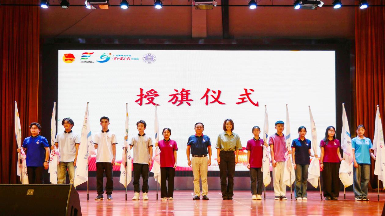 随后,刘洊波、吴湘宜为我校各学院突击队代表授旗,杜小明、祝志科为我校开展花都区“农房风貌美化提升”项目的突击队代表授旗。