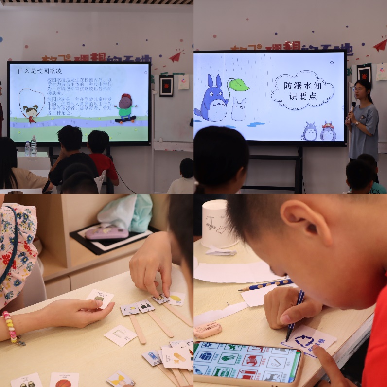 为更好守护儿童安全,培养文明习惯,助力健康成长,实践团开展了垃圾分类、防范校园欺凌、防溺水教育、礼仪知识、情绪心理健康教育等课堂,从知识宣讲到互动游戏,从实践操作到情景演绎,让孩子们在趣味横生的课堂中学会垃圾分类,学会自我保护,知礼守礼懂礼,争做新时代好少年。