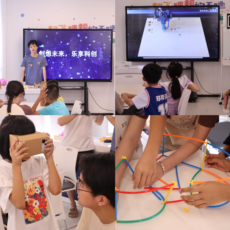 探寻科学知识,感受科技魅力。为了让孩子们直观感受到中国科学技术的发展,实践团成员通过讲述,观看视频,手工制作等方式带领孩子们认识和了解VR眼镜、3D打印以及激光切割等科技成果。孩子们亲手制作属于自己的木制VR眼镜,沉浸式体验虚拟世界的神奇。通过使用可弯曲的厚吸管,孩子们在团队合作中尽情展现自己的创意,共同构建出各具特色的3D模型,每当一个团队成功完成模型时,孩子们都会兴奋地呼喊:“老师,快来看我们的成果!”实践团成员们也积极回应,对孩子们的创造力给予充分的肯定。这场科技盛宴,激发了孩子们探索科学奥秘的热情,也在孩子们心中播下热爱科学的种子,相信在未来的日子里,这些种子将生根发芽,开出智慧的花朵。