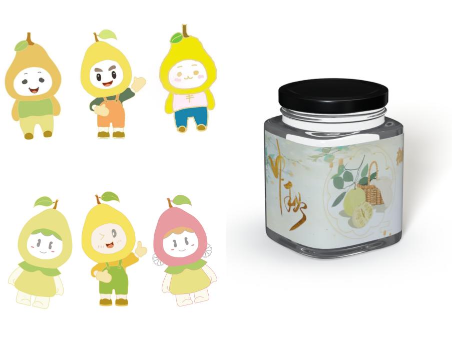 柚子除了作为桃夭镇主要农产品,当地产业园还通过科学研究和技术转化,将柚子花做成美容护肤产品,柚皮做成零食、做成饼,果肉做成罐头、酿酒等,还有蜜饯柚子皮、润喉糖等各种各样的农副产品,实现柚子全果利用,延长柚子产业链。实践团以乡村振兴设计助农为抓手,创作柚子IP卡通形象,将柚子拟化成人,不同的表情和动作活灵活现,栩栩如生;柚子与中秋元素相融合,设计农副产品中秋限定包装,为桃尧镇柚子产业的持续发展注入新活力,助力当地农业品牌发展。
