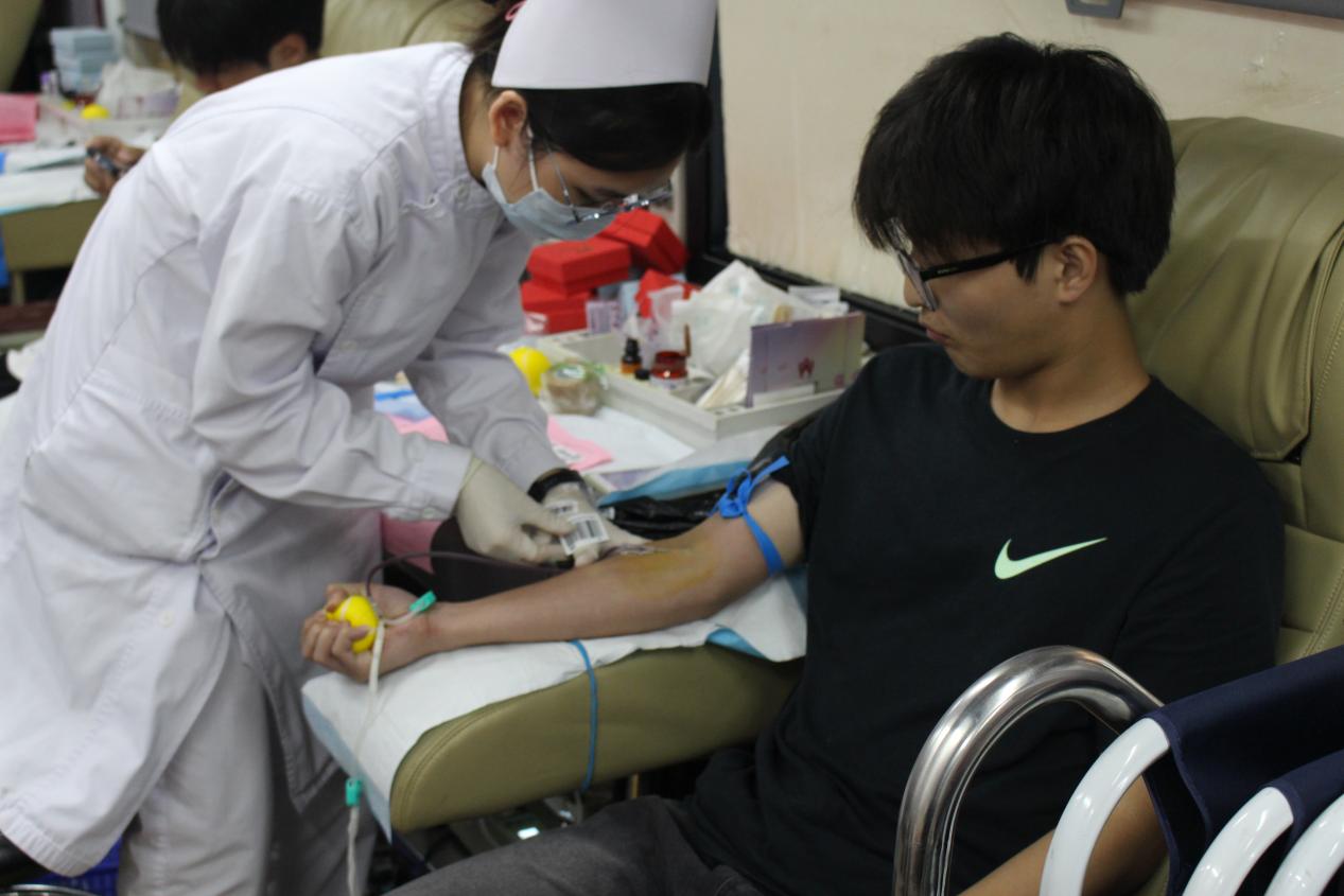 10月17-18日,在校内C12宿舍楼下广场举行了为期两天的无偿献血志愿服务活动。活动现场,同学们在志愿者的引导下,依次完成了填表、体检、验血等流程;献血车上,医护人员们对同学们进行采血操作,同时向他们讲解献血后的注意事项,同学们认真学习并积极配合。