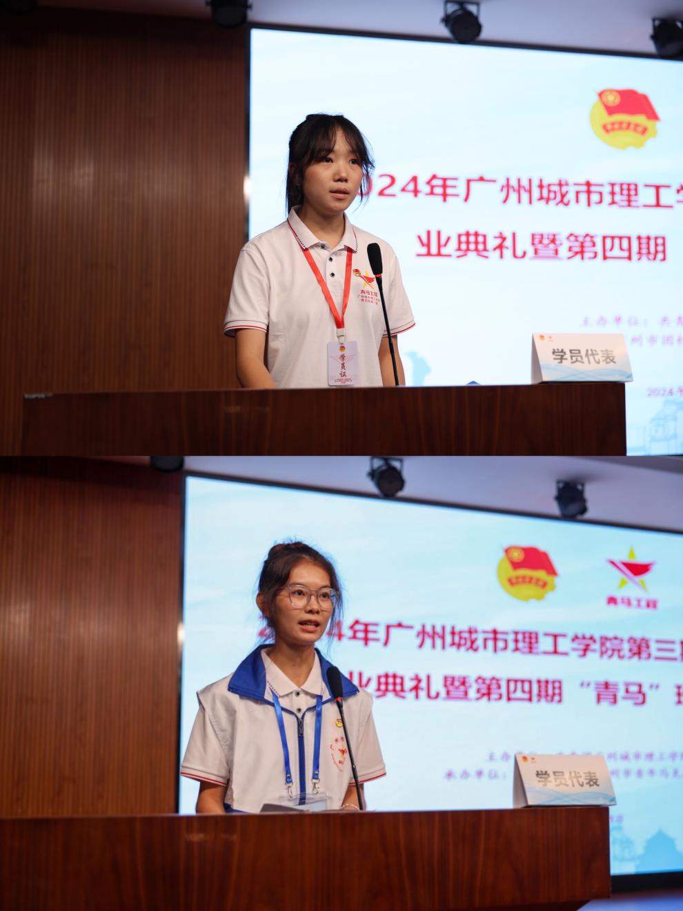 随后,第3期、第4期青马班学生代表依次上台发言,其中第3期青马班优秀学员代表冉艾馨上台发言,分享了在青马班学习的心得与感悟,表达了对学校培养的感激之情;第4期青马班学生代表陈佳妮则向在场师生表达自己参加青马班的激动心情,对未来在青马班的学习充满期待,并承诺自己会不断努力,为成为一名真正的青年马克思主义骨干而奋斗。
