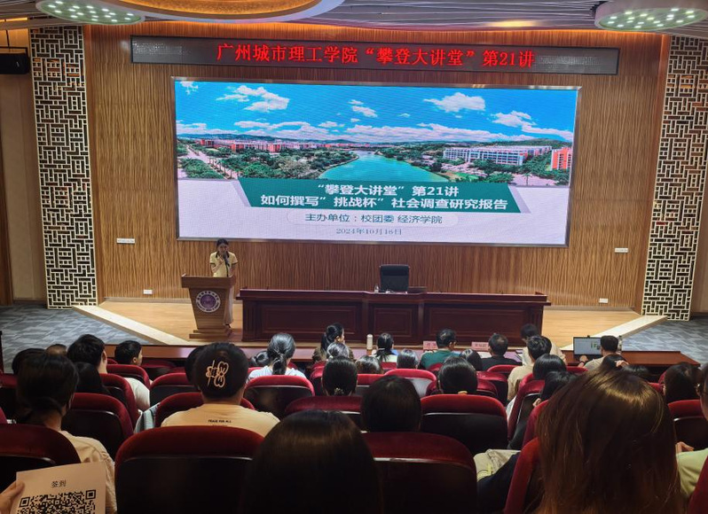 本网讯(记者 兰婷 罗心盈)为了帮助学生更好地掌握社会调查研究报告的撰写技巧和方法,提升学生社会调研报告的撰写能力,由校团委主办、经济学院承办的“攀登大讲堂第21讲”——如何撰写“挑战杯”社会调查研究报告于10月16日在行政楼703报告厅开讲。华南师范大学政治与公共管理学院教授、博士生导师颜海娜担任主讲。经济学院书记任远、经济学院副院长黄瑞新、电气工程学院党总支副书记符红勋、学校团委书记王羽及各学院师生共200余人参与了本次讲座。