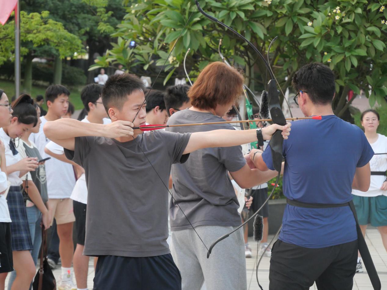 体验射箭运动的稳定性、专注力和集中力(校团委宣传部游媚莉 摄)