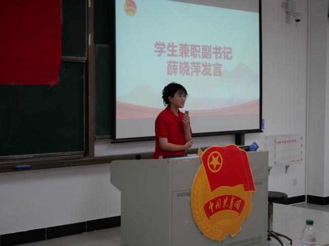 学生兼职副书记薛晓萍发言(校团委宣传部 肖碧兴 摄)