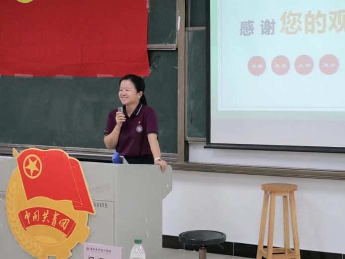 最后,校团委书记王羽致辞,她代表校团委对上一届学生部门负责人辛勤工作表达感谢,并对新一届负责人表示祝贺与期望。她表示校团委学生组织作为先进青年的群团组织下的重要组成部分,各学生部门负责人应该以日常学习为引,继续发扬优良传统,勇于创新,积极投入服务同学的工作当中,实现自我成长。她以“心境澄明,心力茁壮,让人迎面就能感受到年轻干部应有的清澈和纯粹”,勉励在场学生骨干在未来工作中应积极进取、奋发有为,自觉承担起学生部门负责人的责任与担当,展现出共青团学生组织积极向上的精神风貌。