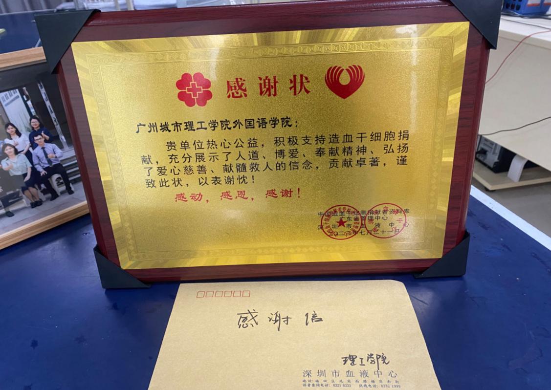 本网讯(记者 叶善美 陈朝娉)11月20日,我校外国语学院收到深圳市血液中心发来的感谢状,对学院学生积极支持造血干细胞捐献的善举表示感谢。
