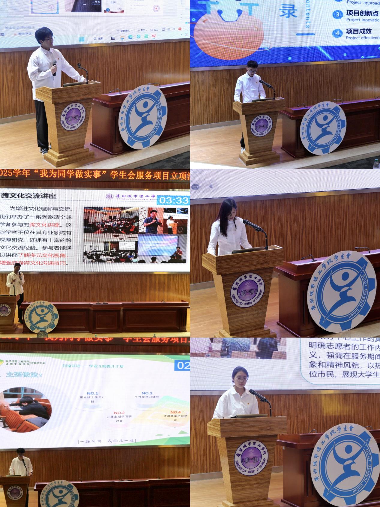 接着,各学院对本学院学生会的服务项目进行汇报。汽车与交通工程学院学生会注重精准帮扶,一对一结对帮扶困难学生,助力学业提升;电气工程学院学生会通过“读书嘉年华”活动为广大学生提供一个多元化的阅读和学习平台;计算机工程学院/大数据学院学生会注重知行合一,在服务同学、服务社会的生动实践中提升学院学子的综合素质能力;管理学院学生会开展“职来职往,服务基层”系列分享会,帮助同学树立正确的就业观和择业观;珠宝学院学生会策划并开展了一系列考研辅导活动,包括考研讲座、学长考研经验分享会等等,帮助同学们更好地规划考研之路。