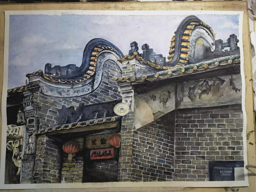 水彩作品《古城旧韵》(朱韵诗 提供)
