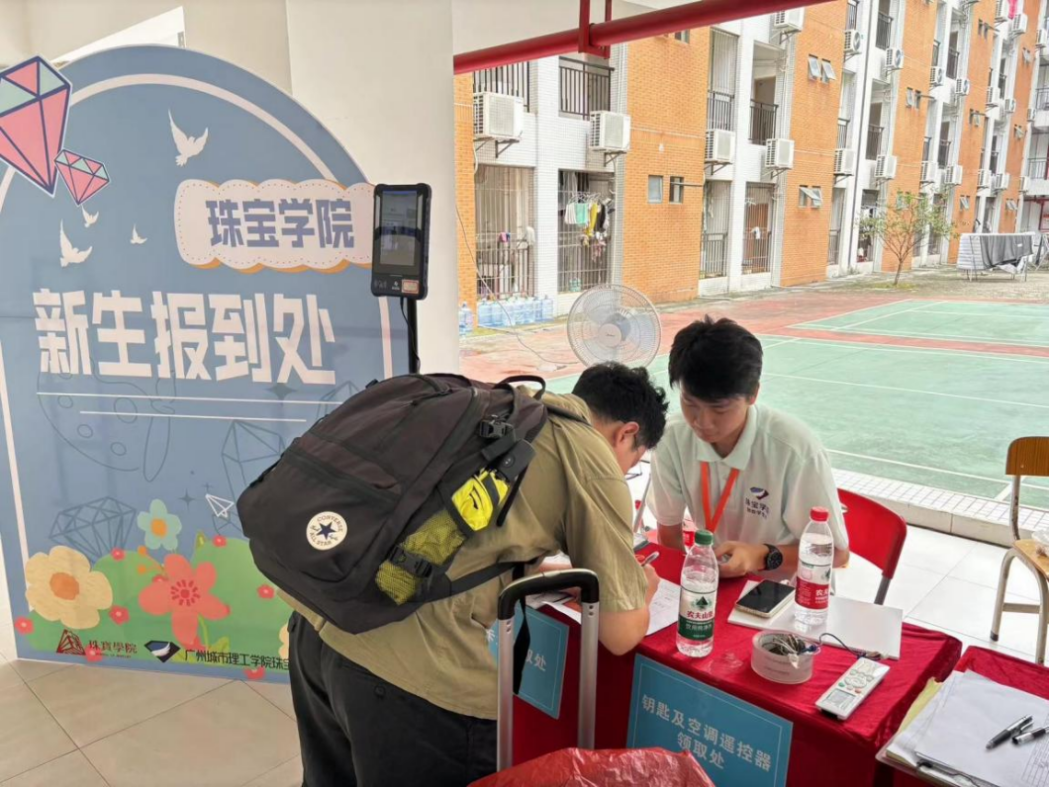 陈辉宏正在帮助新生进行报到(陈辉宏 提供)