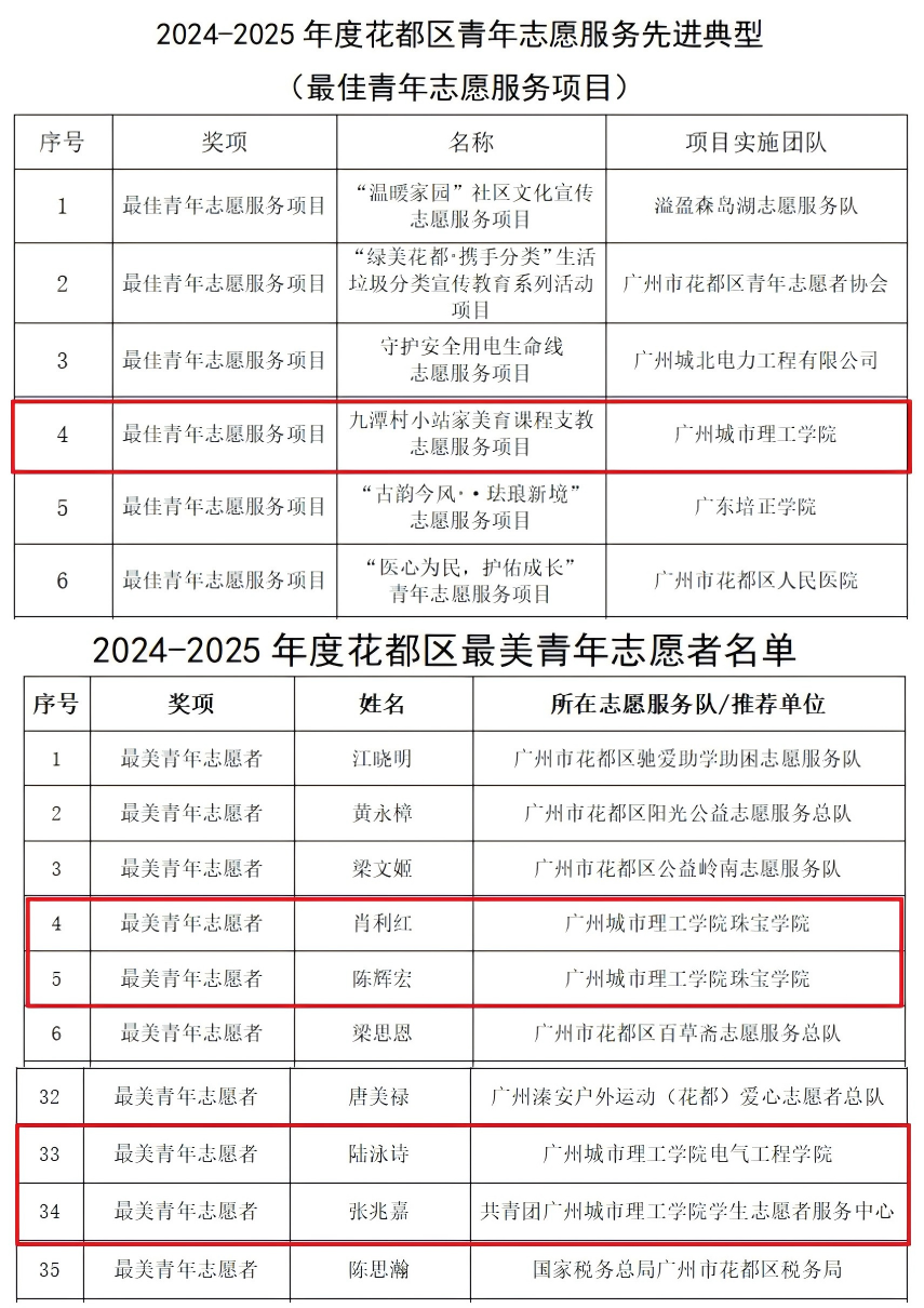 本网讯(记者 冯田丽)为大力弘扬志愿精神、传承雷锋精神,引导全区广大青年培育和践行社会主义核心价值观,持续推动花都区青年志愿服务事业阔步向好发展,区委社会工作部、团区委联合开展2024-2025年度花都区青年志愿服务先进典型评选活动。2月27日,评选公示结束,我校外国语学院的《九潭村小站家美育课程支教》志愿服务项目和4名优秀志愿者入选花都区志愿服务先进典型。
