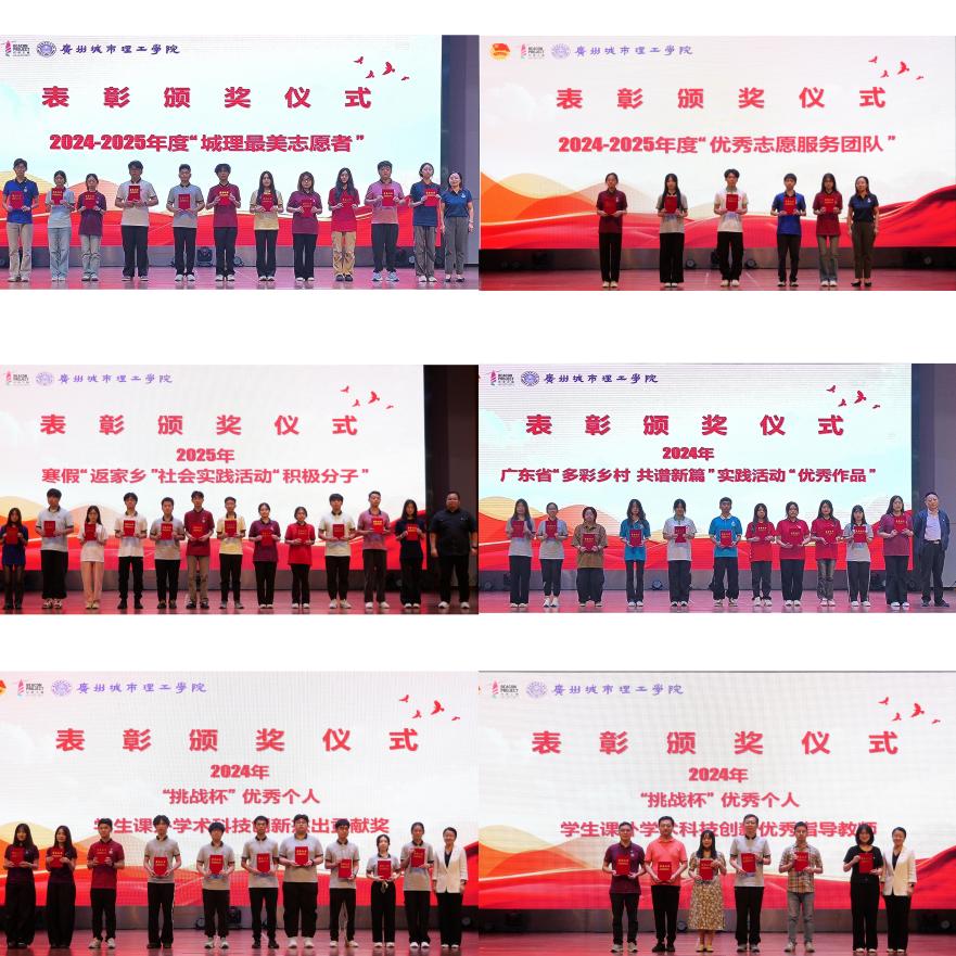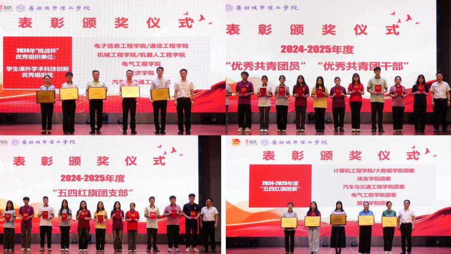 会上,校团委书记王羽宣读了广州城市理工学院2024—2025年度共青团组织先进集体和优秀个人的表彰决定,学校各级党政领导为获奖单位及个人代表颁奖。