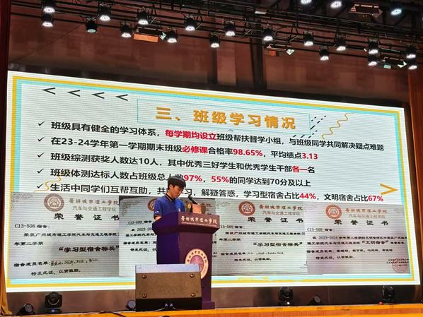 作为先进班集体代表在学院学风表彰大会上发言(罗嘉志 提供)