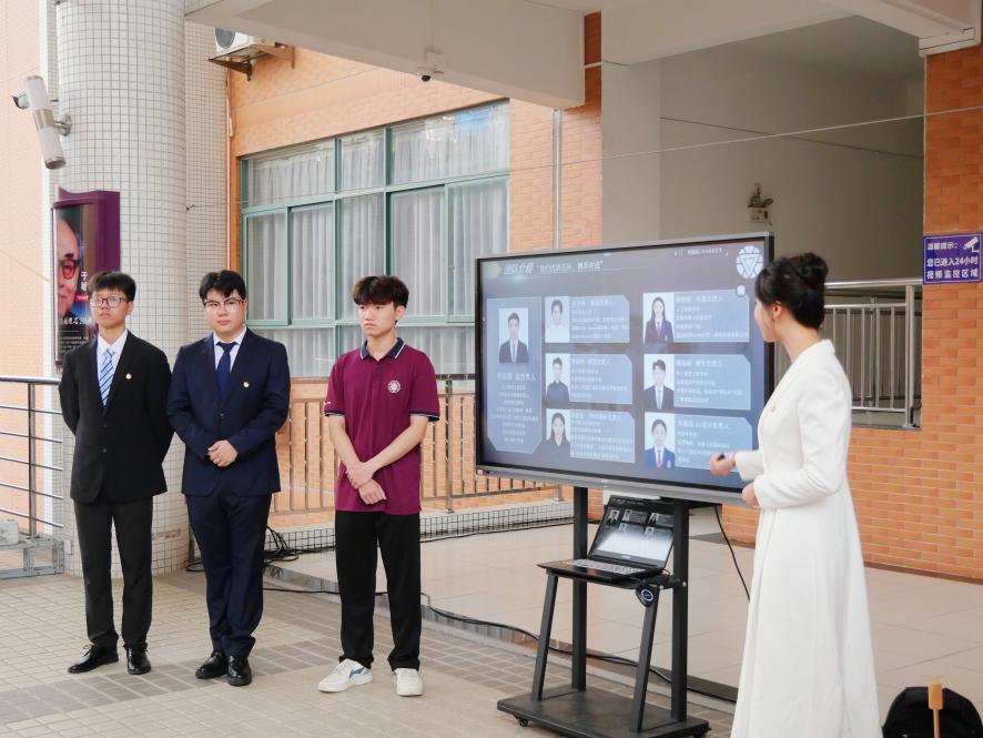 活动伊始,校团委邀请了荣获第十八届“挑战杯”广东大学生课外学术科技作品竞赛特等奖的团队为师生进行现场分享,团队学生代表分别从项目背景、技术创新点、应用价值以及现实意义等方面进行分享,向老师和同学们展示了团队项目成果,引起在场师生的鼓掌点赞。随后,各二级学院团队依次向杜小明等人介绍项目成果。