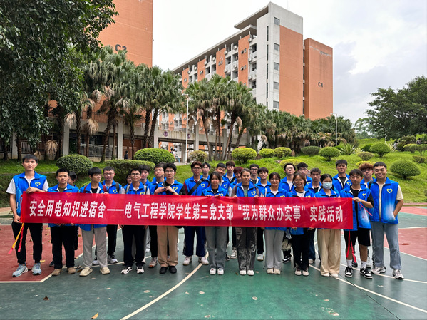 林世杰(第二排右五)策划安全用电进宿舍活动(林世杰 提供)
