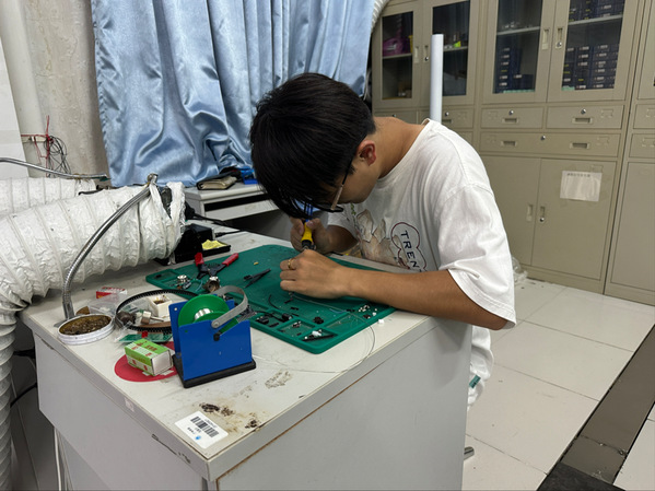 对他而言,大学期间的追求不止于学好专业知识。大一下学期,看着同学们陆续在实验室里崭露头角,怀揣着提升自我能力的想法,在班助师姐的引荐下,林世杰进入到电工电子创新实验室之中。尽管加入实验室的时间稍晚,但他依旧坚信,只要自己足够努力,同样可以做出成果。