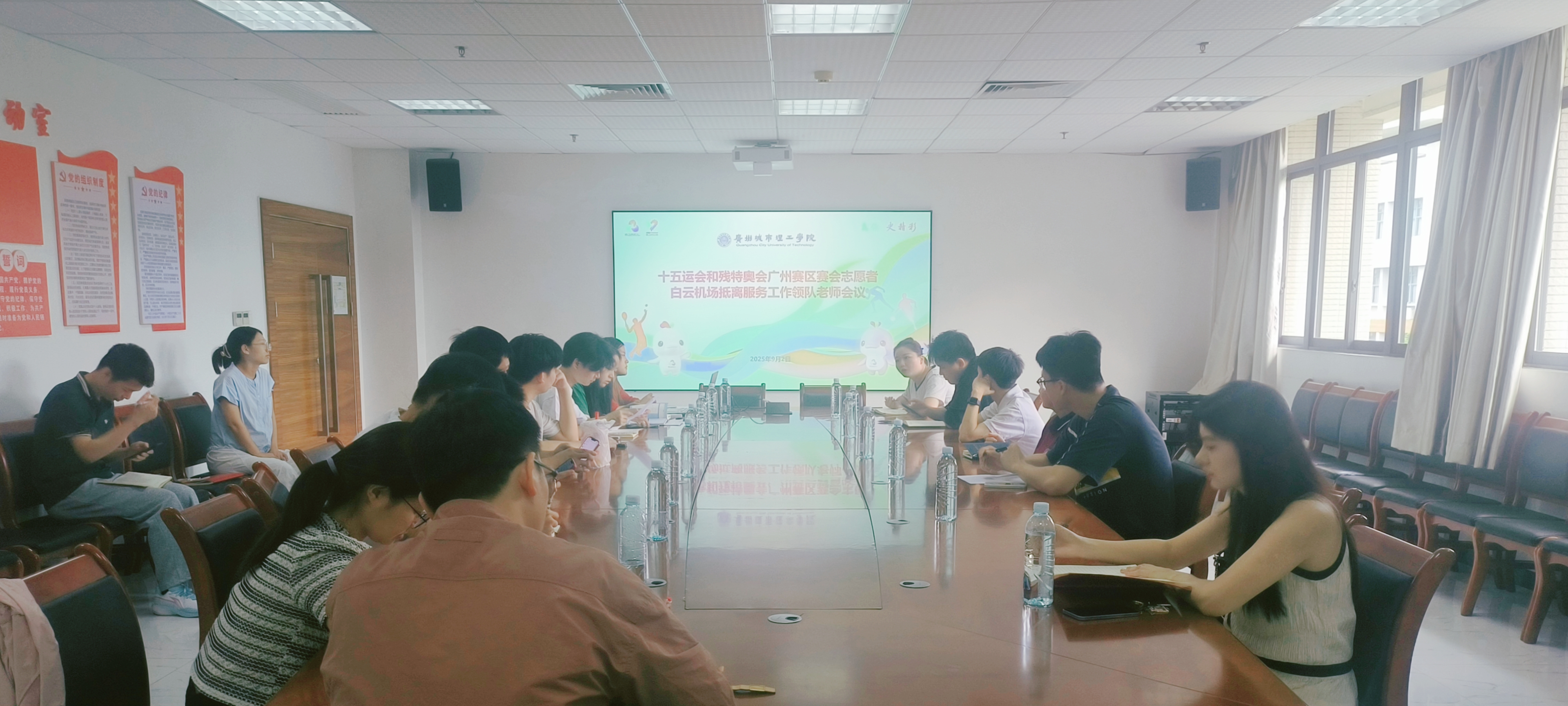 本网讯(记者 周梦思)为全力做好十五运会和残特奥会广州赛区白云机场抵离迎送志愿服务工作,9月2日,校团委在行政楼510会议室组织召开十五运和残特奥会赛会志愿者服务领队会议。各学院十五运会和残特奥会赛会志愿服务领队老师参加本次会议。