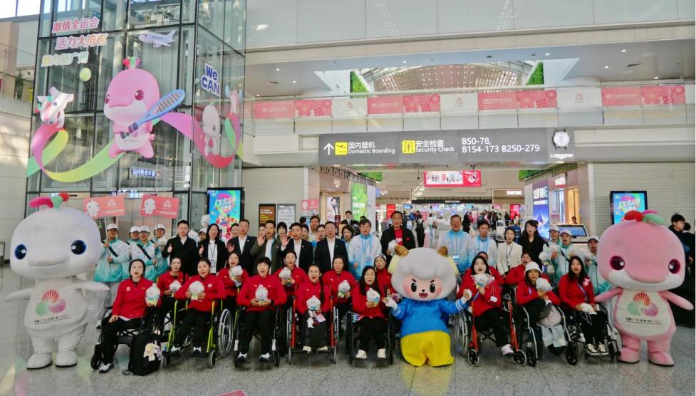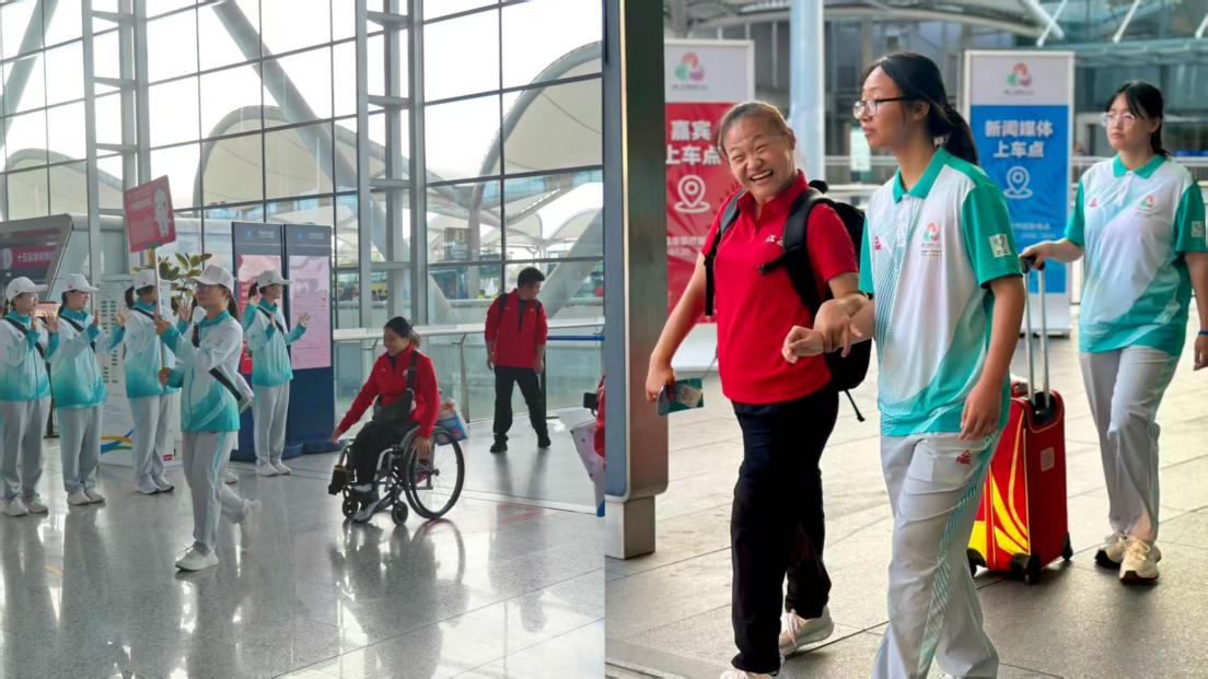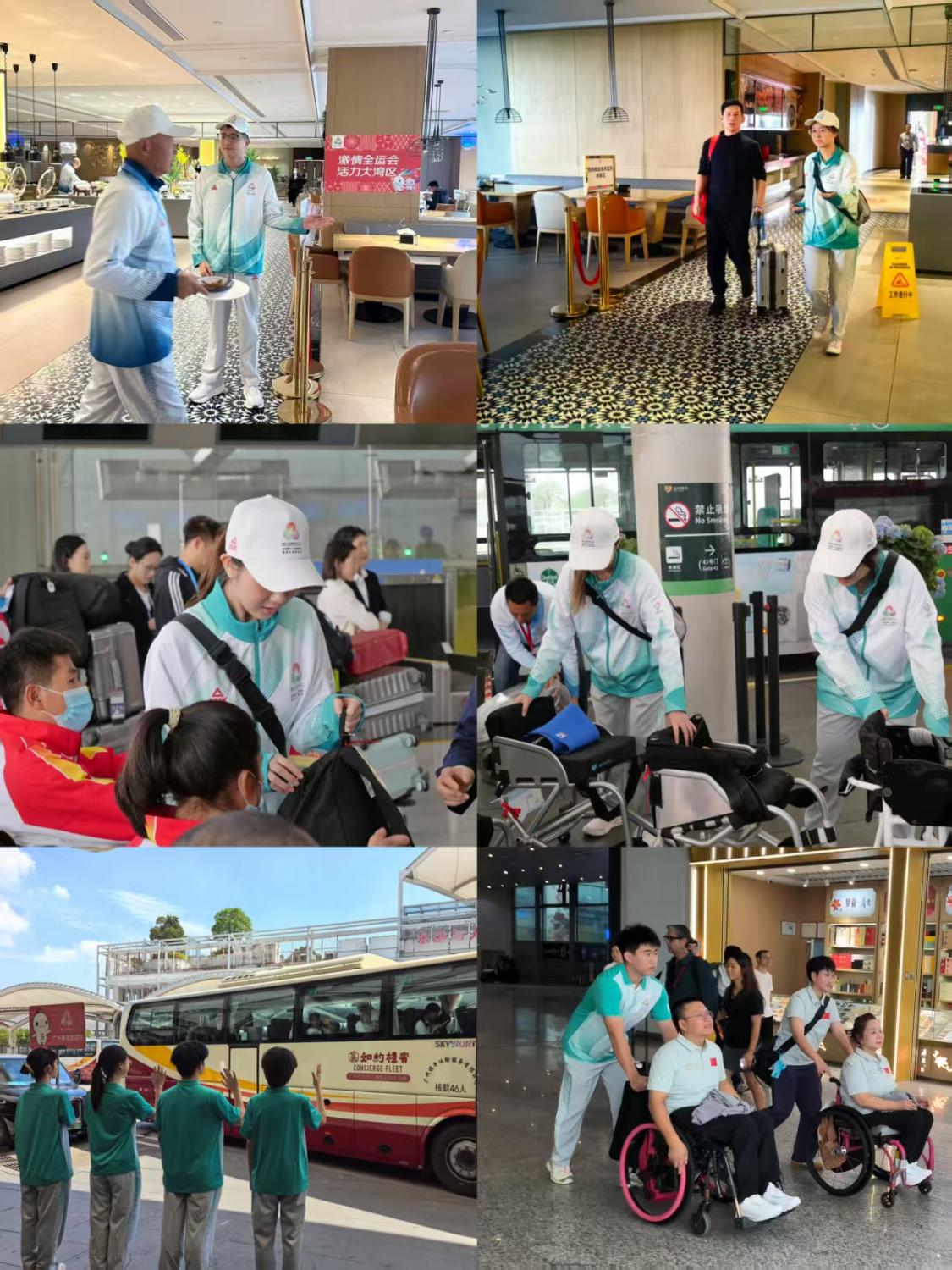 广州城理“小海豚”志愿者遵循“平等、尊重、适度、暖心、精准、高效”原则,以伙伴、朋友的身份提供服务,注重残障人士的自主性与独立性,营造暖心服务氛围。在白云机场T1、T2、T3航站楼接机口,“小海豚”会提前核对残障运动员的航班信息,推着可折叠的无障碍行李车等候,为坐轮椅的运动员搬运行李并平稳护送其通过特殊通道;遇到视力障碍的运动员,志愿者会轻握对方的手腕引导其避开人群,还会提前告知前方路况。从最初志愿者问运动员“您好,需要帮忙吗?”到运动员遇到问题主动问“志愿者,我的同伴需要去T1,能带他去T1吗?”这不仅仅是对志愿者服务的认可,更是一份信任。