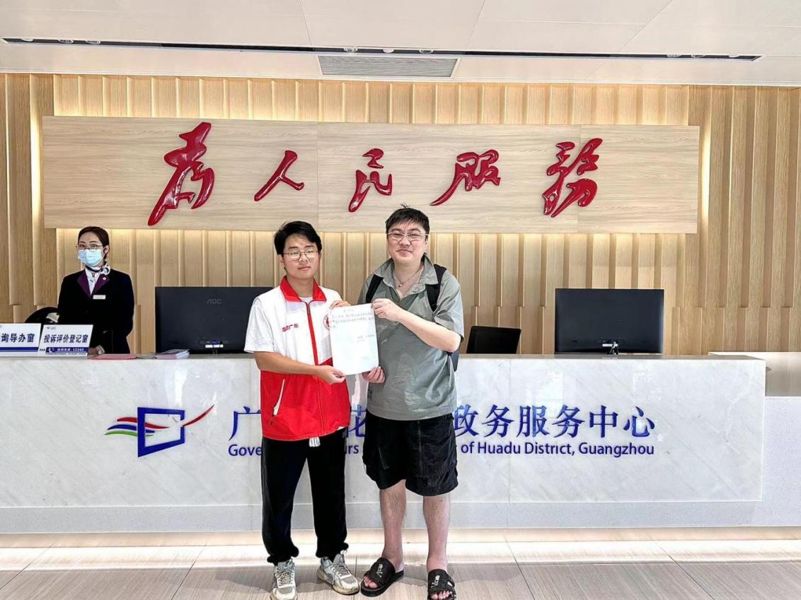 我校志愿者在花都区政务服务中心志愿活动中获得群众表扬信(经济学院 提供)